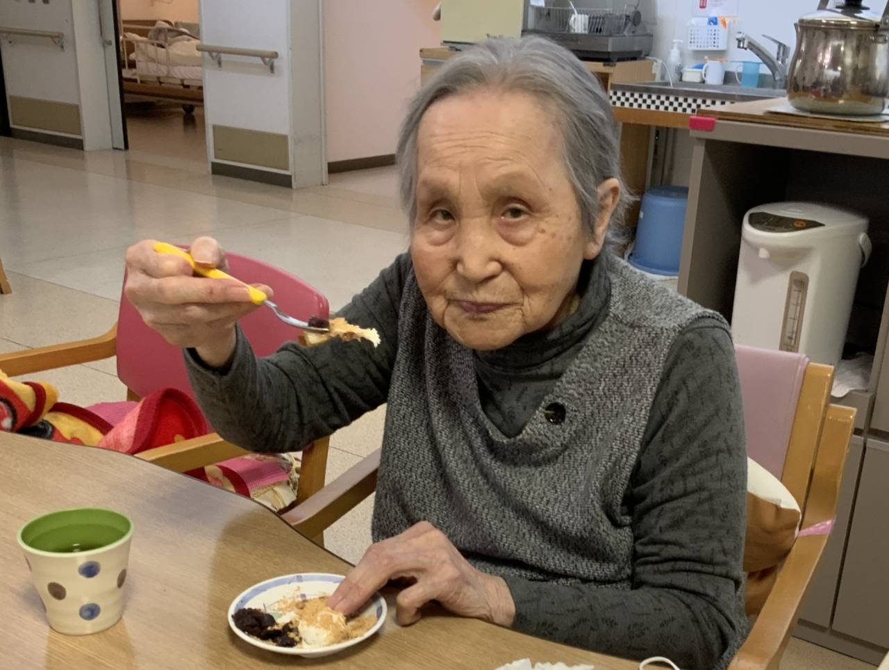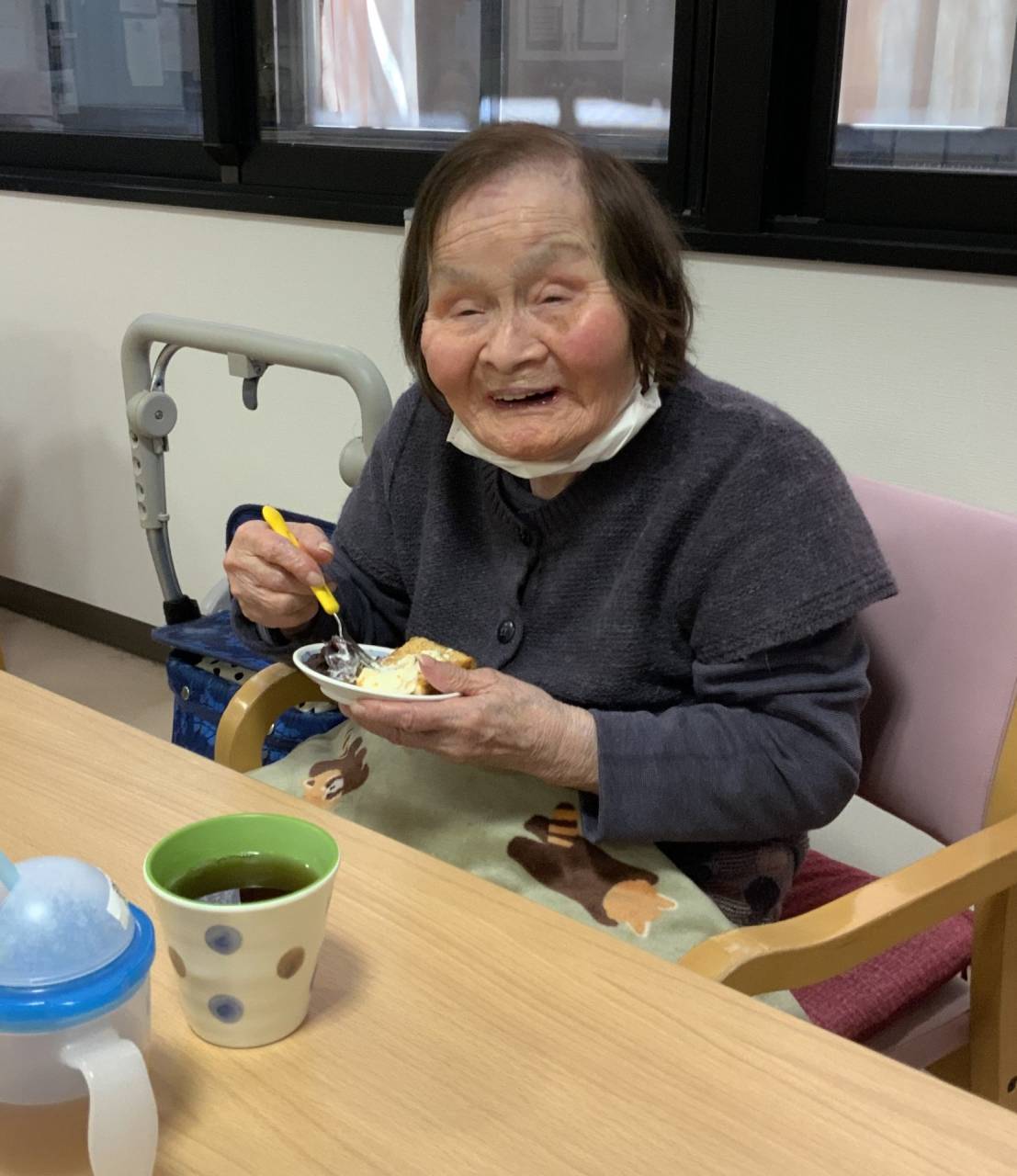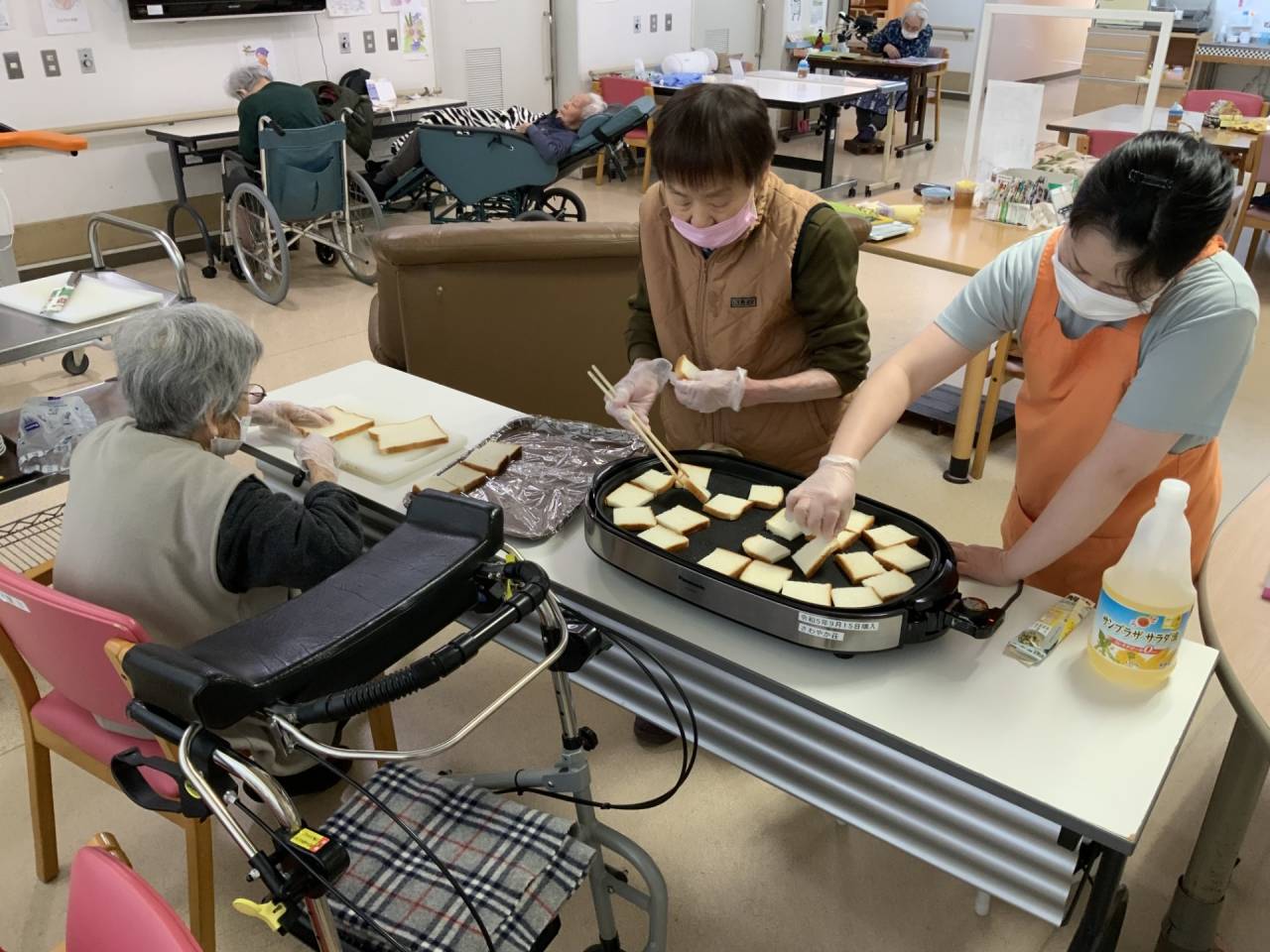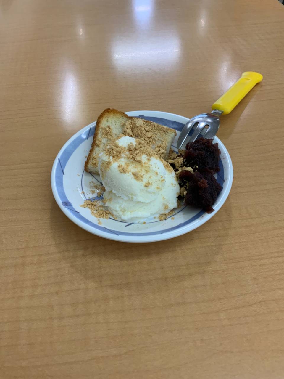 老健「おやつレク」 2025/05/07 おやつレクを行いました。 老健さわやか荘 サンドイッチ用の食パンをホットプレートでカリカリに焼きました。 お皿にパンとバニラアイス、あんこ、きな粉をトッピングして利用者様に提供しました。 簡単なメニューだったため、調理は完全に利用者様に行なっていただきました。 カリカリに上手に焼いてくれました🍞 簡単なメニューでしたが、皆さん大変喜んでくれました♬ (令和7年4月17日 木曜日 CDユニット実施) 完成品🍞 トッピングはたっぷり乗せるのが、おいしさのポイント☝ いい笑顔 さわやか荘(老健)