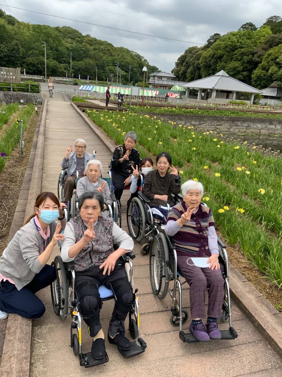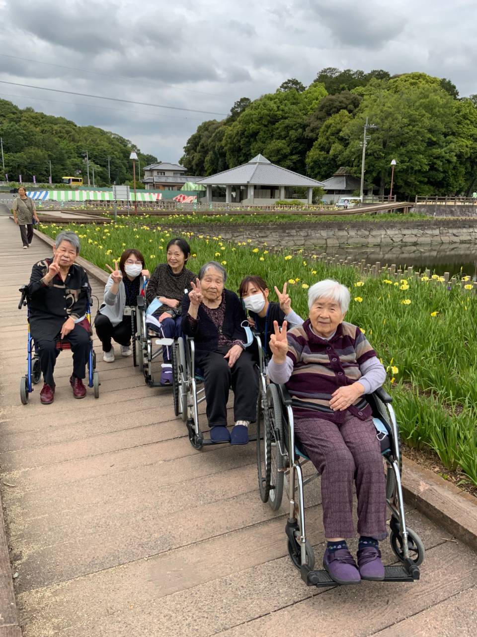 老健「外出レク」 2025/06/17 菖蒲⚘を見に行ってきました。 老健さわやか荘 菖蒲を見に亀鶴公園に行ってきました。 久しぶりに外出される方やあまり外出を好まれない方もみなさん外出を喜ばれ「行こう!」と、亀鶴公園に向かいました。道中では「この辺よう来よったんで」「懐かしいわ」など、たくさん話してくれました。亀鶴公園に到着し菖蒲を見ると「今年は黄色が多いな」「ようけ咲いとる」「綺麗やな」「見れてよかった」などと話し、観賞を楽しまれていました。 いい気分転換の機会になったと思います。 (令和7年5月30日 ABユニット実施) さわやか荘(老健)