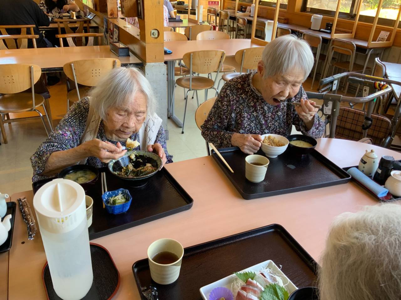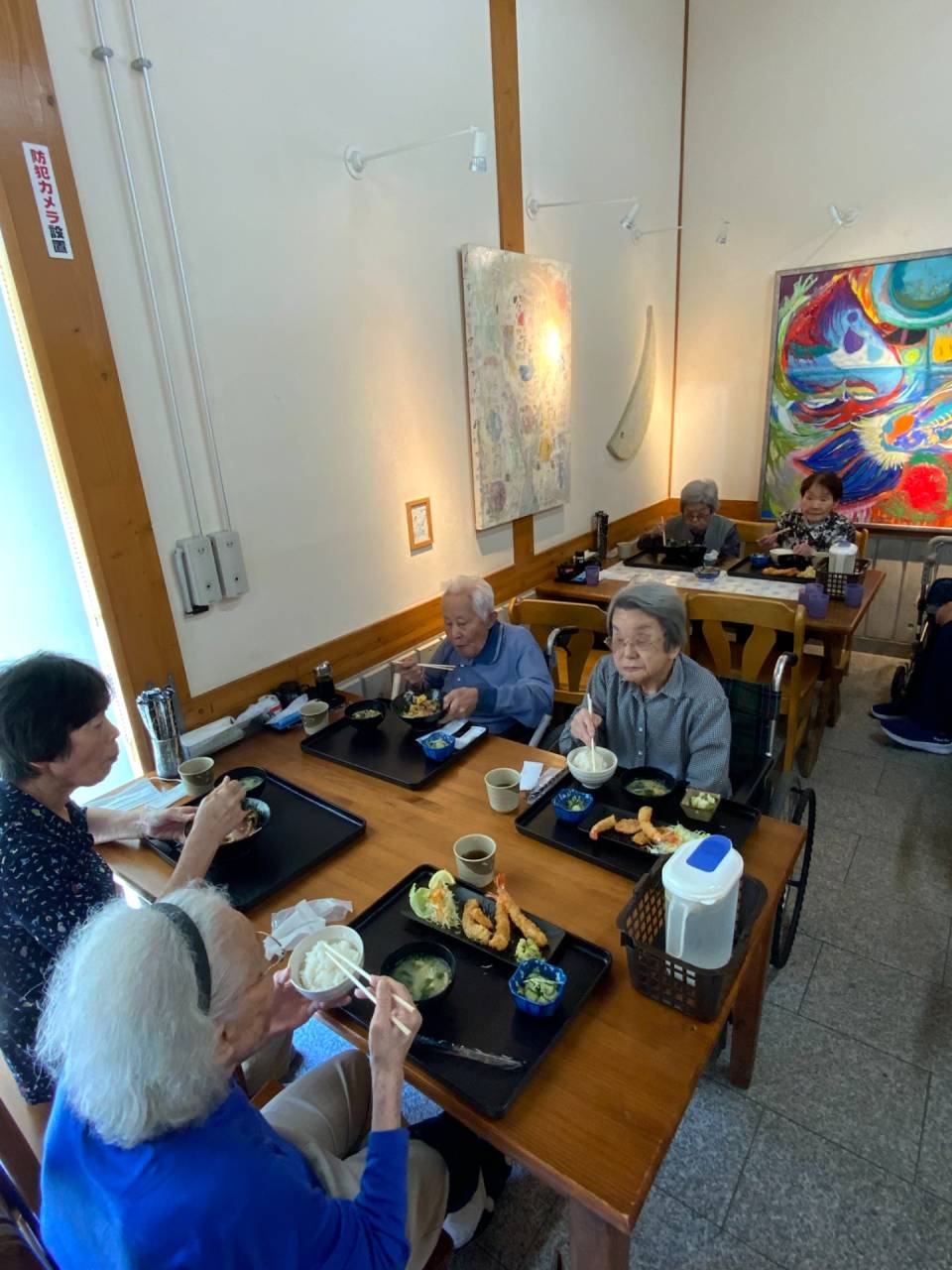 老健「外食レク」 2025/10/02 牟礼道の駅「海鮮食堂・じゃこや」へランチを食べに行きました。 老健さわやか荘 7月12日(土)に利用者様6名、職員5名で7月26日(土)に利用者様6名、職員5名でご飯を食べに行きました。 両日とも暑い日でしたが、久しぶりの外での食事で、個々に好きなものをお腹いっぱい食べることができました。参加された皆様大変喜ばれていました。「また来ようね」と職員が声を掛けると、利用者様も頷かれ、今度は甘味処に行きたいと要望を言ってくださいました。食事の後は、道の駅の売店でアイスクリームも食べることができ、よかったです。 (令和7年7月 CDユニット実施) さわやか荘(老健)