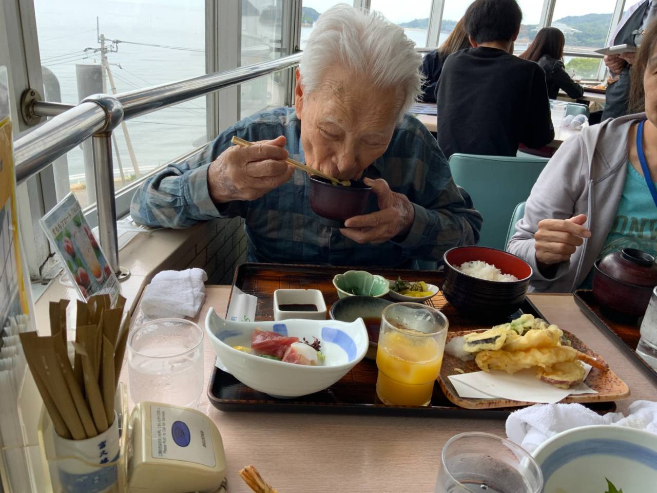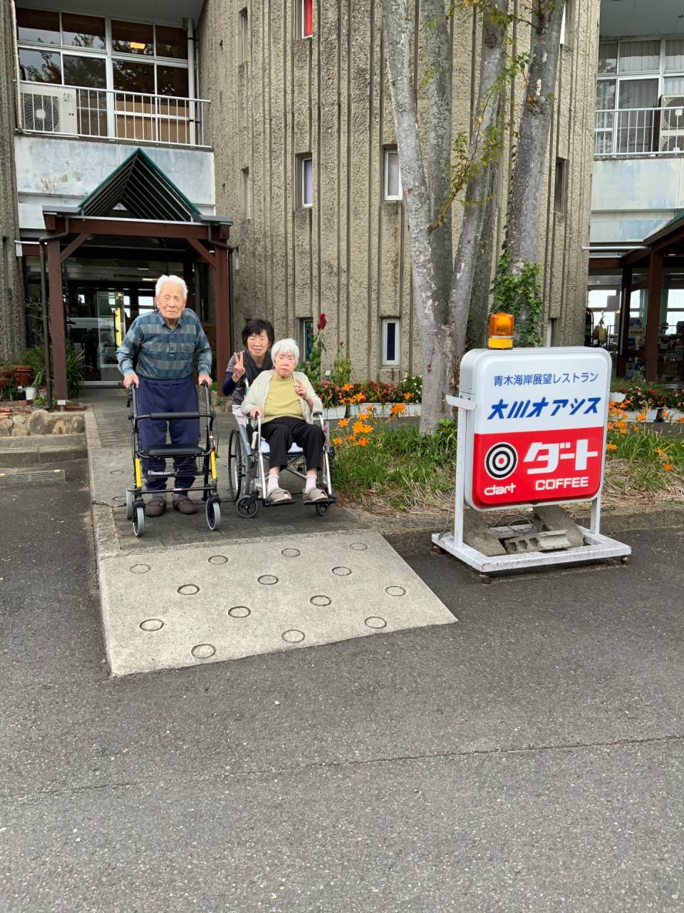 老健「お誕生日祝い」 2025/10/08 お誕生日をお祝いしよう🎉 老健さわやか荘 10月がお誕生日の利用者様(T氏、S氏)2名と職員で大川オアシスに行ってきました🍴 食べるものはメニュー表をみてご自分で決められ、和定食の刺身や天ぷらが美味しかったと感激されていました。 帰りは旧の津田道、自宅周辺を通り「懐かしいー」と喜んで頂けました。 (令和7年10月3日 ABユニット実施) さわやか荘(老健)