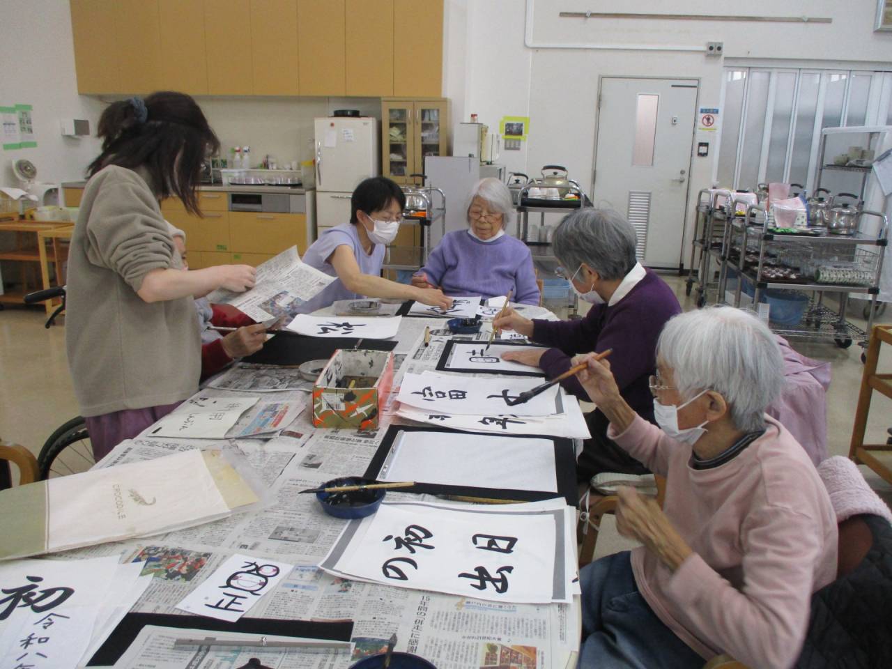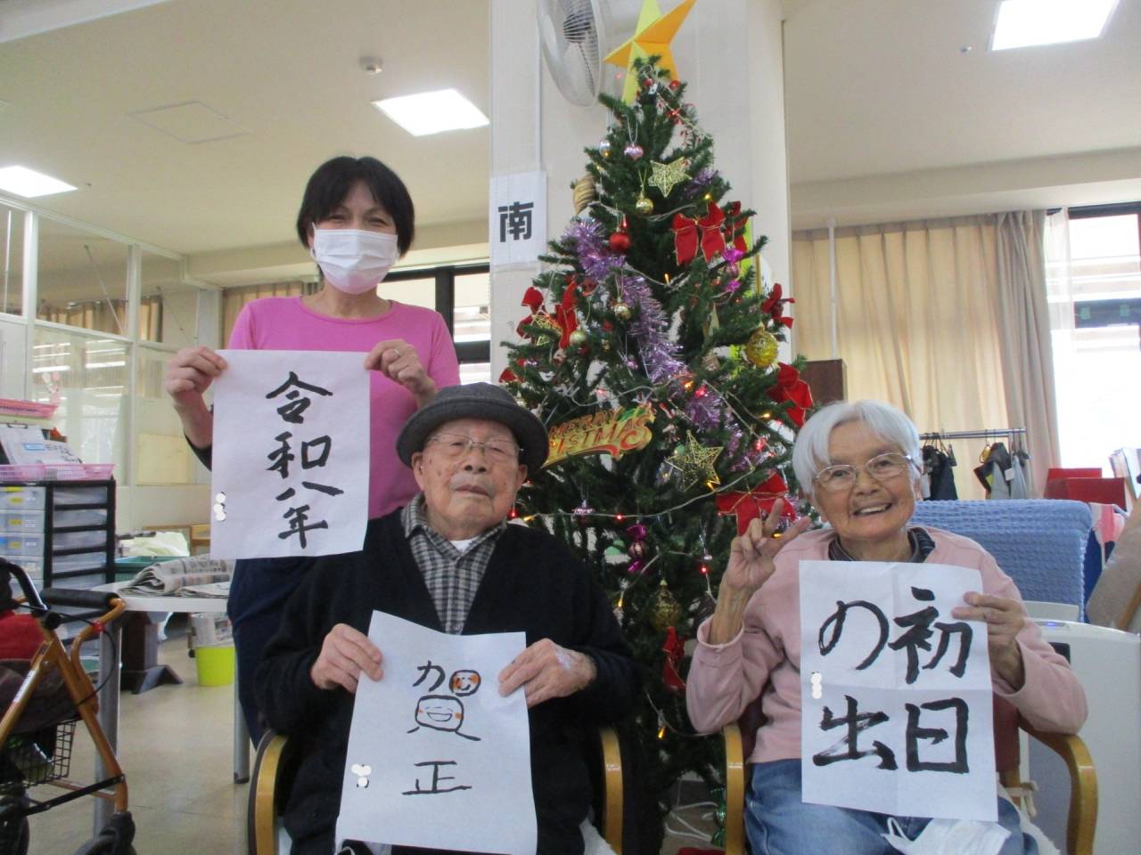 通所リハ「新年の準備」 2025/12/28 習字 通所リハビリ 選択レクリエーションの中で、定期的に習字をしています。今月は12月なので、🎍新年を迎える内容の文字になっています。あと数日で今年も終わります。毎年の事ですが、「ほんと、一年が早いですね~」 通所リハビリテーションセンター(デイケア)