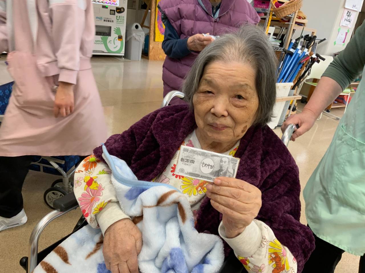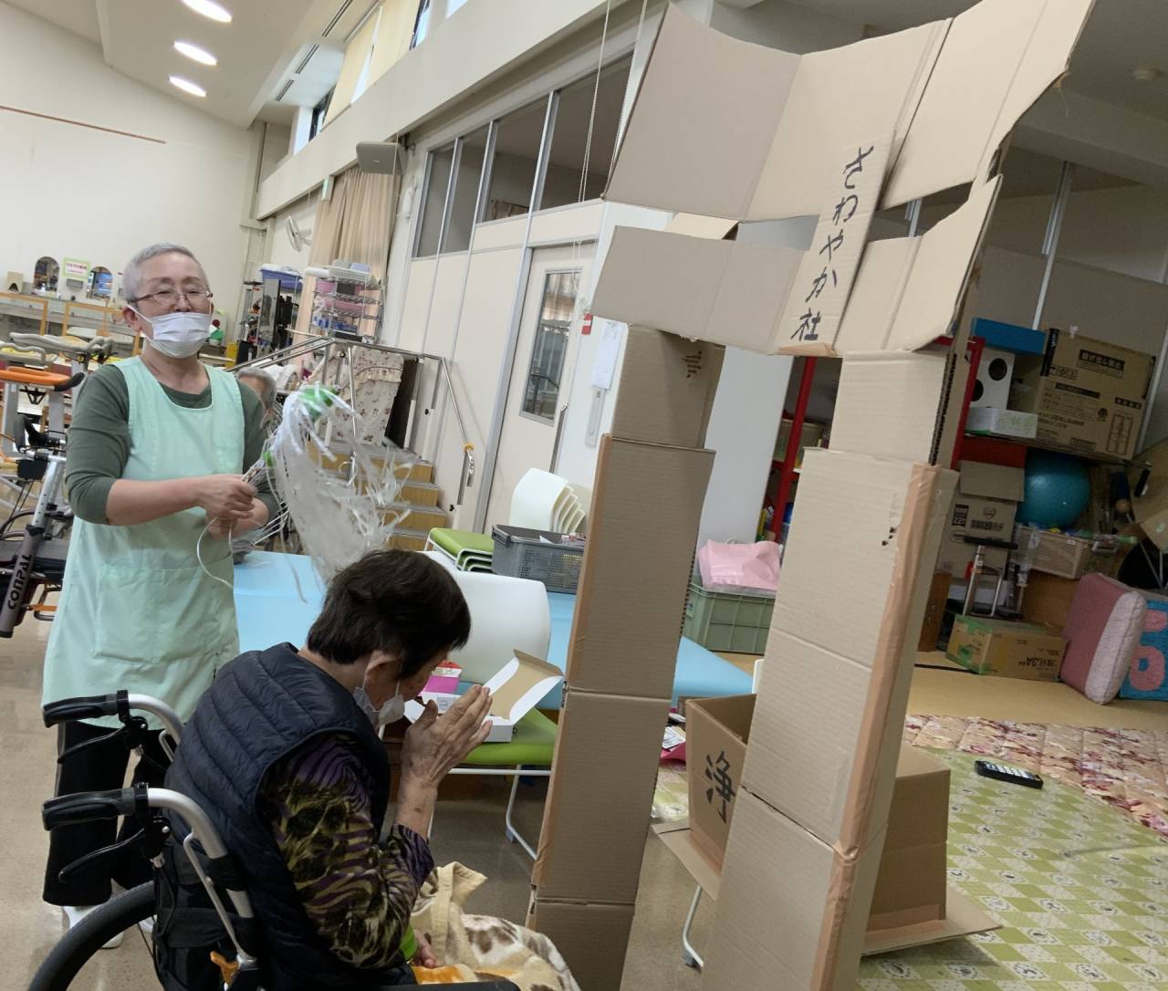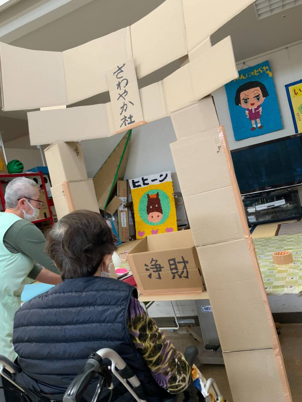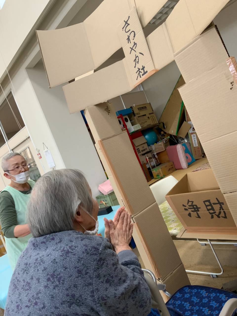 老健「施設内での初詣」 2026/01/14 お正月気分を味わっていただきました🎍。 老健さわやか荘 段ボールで鳥居と浄財箱を作成し、設置。 お祓いも行い、くじ引きを引いて新年の抱負を祈願しました。 そのあとはカラオケ大会を行いました。 短い時間でしたが、入所中の利用者様にはお正月気分を味わっていただけたと思います。 あいさつが遅くなりましたが、今年も老健さわやか荘をよろしくお願いいたします。 (令和8年1月1日 木曜日 CDユニット実施) 浄財用のお金を持って記念撮影📷 浄財金を投げ入れます。 その後、お参り⛩ 新年が良い年になるようにお祓いもします。 おみくじも引いて、新年もいい年に✨ さわやか荘(老健)