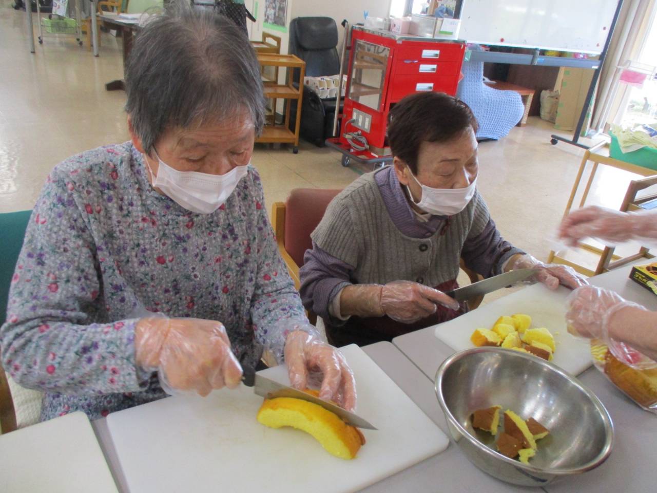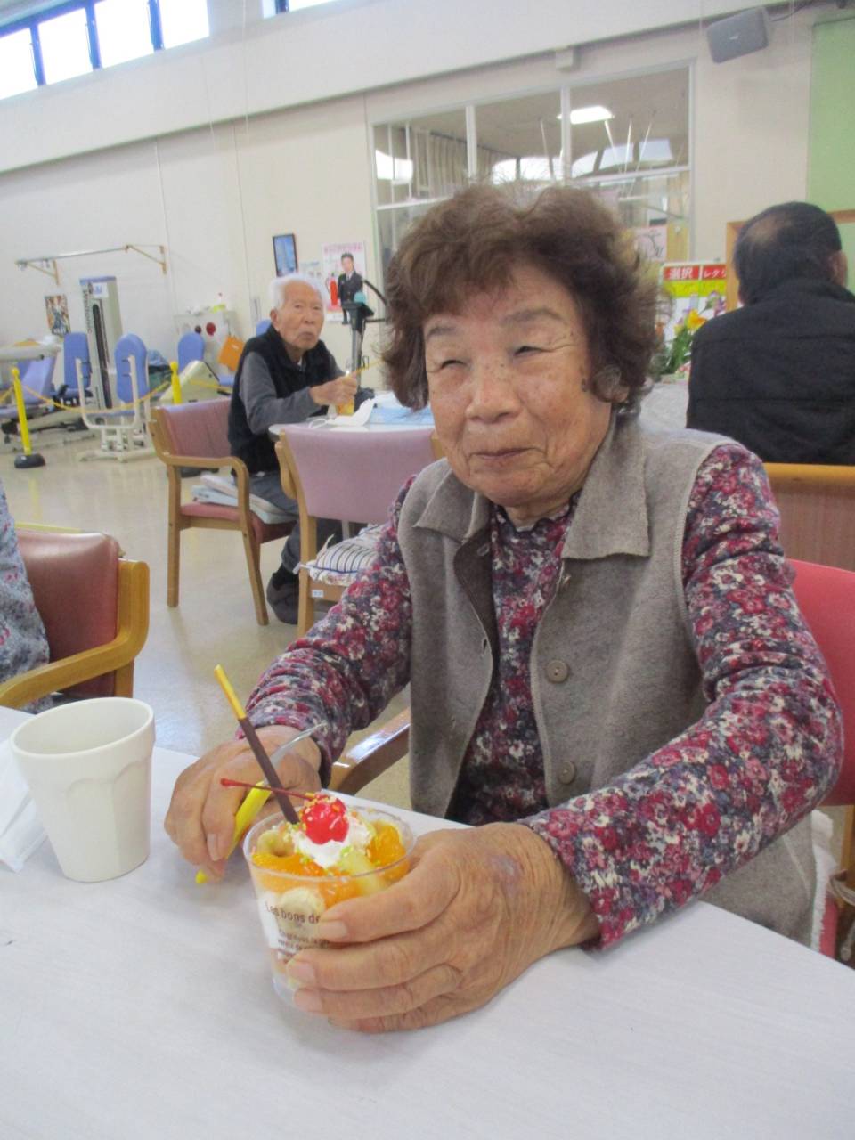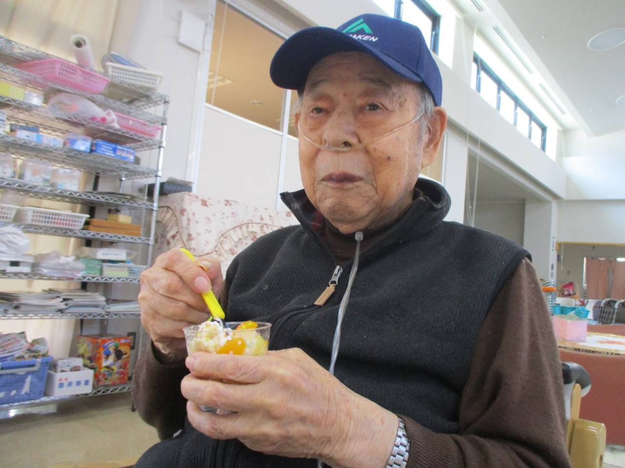 通所リハ「💕フルーツパフェ作り」 2026/04/22 「男子も厨房に入るべし!」 通所リハ フルーツパフェを作りました。男性の利用者様にもご参加いただいております。缶詰を開けるのは力がいるので助かります。自立支援介護を進めるために、洗濯物たたみ、コップやおしぼり・昼食の準備、洗い物等、「お手伝いしてもかまんよ。」という利用者様には積極的にご参加いただいています。 おやつ作り 通所リハ 美味しくできたよ!ピース! 通所リハビリテーションセンター(デイケア)